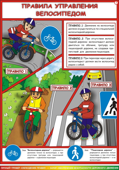 • Переходить дорогу с велосипедом можно только везя его рядом с собой.