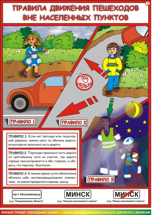 • При движении по краю проезжей части или по обочине в темное время суток, необходимо иметь на одежде светоотражающие полоски или фонарь в руке, чтобы водители могли видеть человека.Правило 3: Переход дороги